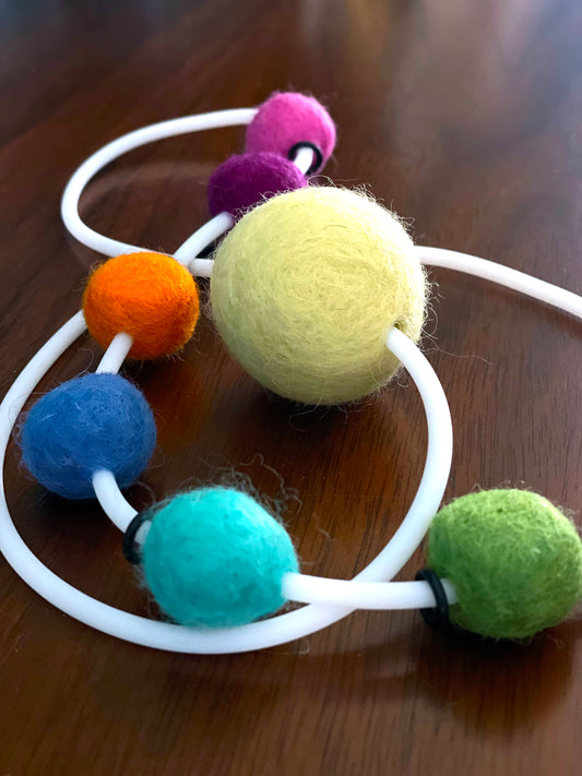 Modern Long Single/Double Strand White Rubber Necklace With 9 Sherbert-Color Wool Felt Balls